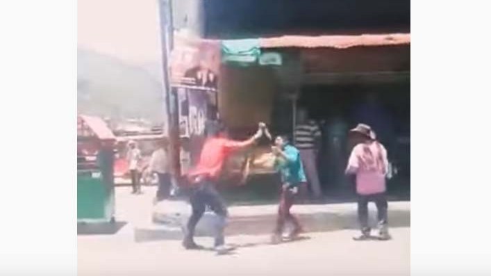 Llama la atención que en los videos desde la escena nadie interviene contundentemente para detener al marido y al amante. Más bien, la mayoría observa mientras otros se alejan corriendo de la zona.