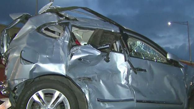 La demanda resumió que el automóvil montó la pared en el lado izquierdo de la carretera y luego se deslizó aproximadamente 100 pies a lo largo de la parte superior, “golpeando un pilar de soporte vertical haciendo que el vehículo se partiera en dos partes, hiriendo gravemente” a Cannizzaro.