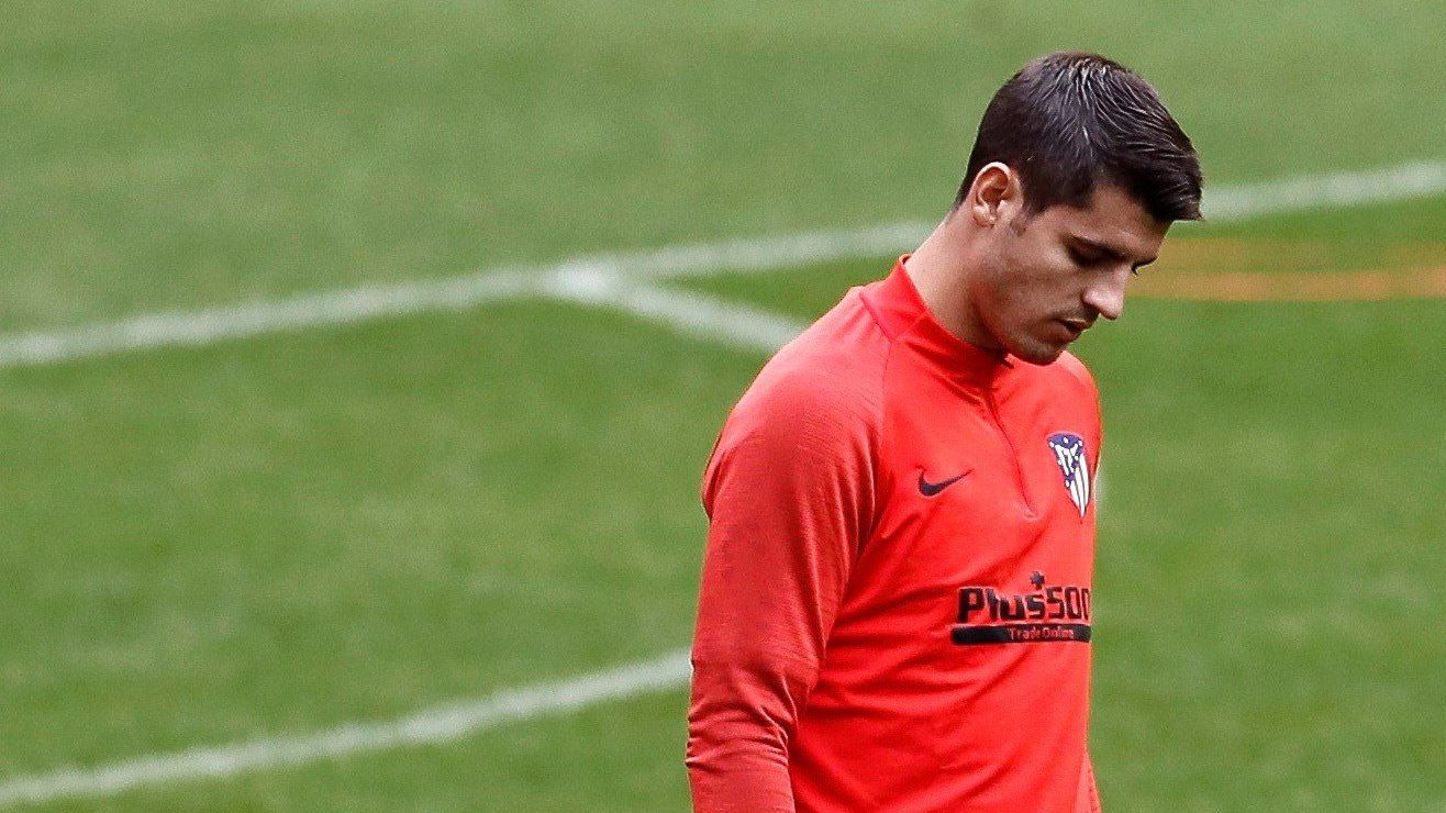 Álvaro Morata entrena previo al partido entre el Atlético y el Valencia. Crédito: EFE