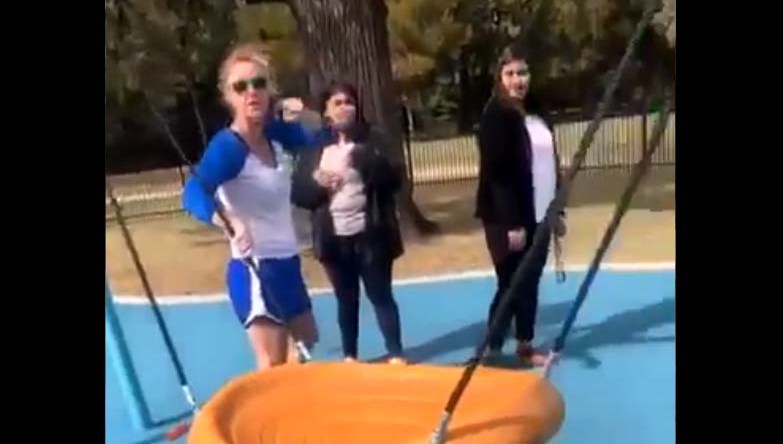 En un video publicado en Twitter se observa a varias adolescentes en un columpio cuando una mujer blanca se les acerca y comienza a gritarles que se vayan del lugar.