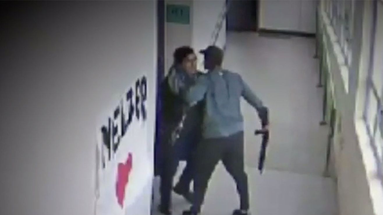Las imágenes muestran al estudiante, identificado como Ángel Granados-Díaz, caminando por el pasillo donde está filmando la cámara. Se mueve fuera de la vista cuando entra al salón, justo detrás de Lowe. Segundos después, la gente comienza a correr por los pasillos.