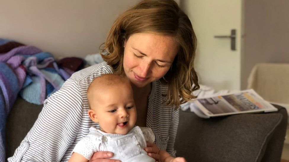 Heather Sarno llegó a sentirse "culpable" de haber traído a su hijo a un mundo tan incierto. Crédito: BBC