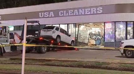 La policía cree que la víctima fue baleada mientras conducía por la calle W. Gulf Bank y que luego aceleró tratando de evadir a sus atacantes para luego estrellarse contra la tintorería USA Cleaners.