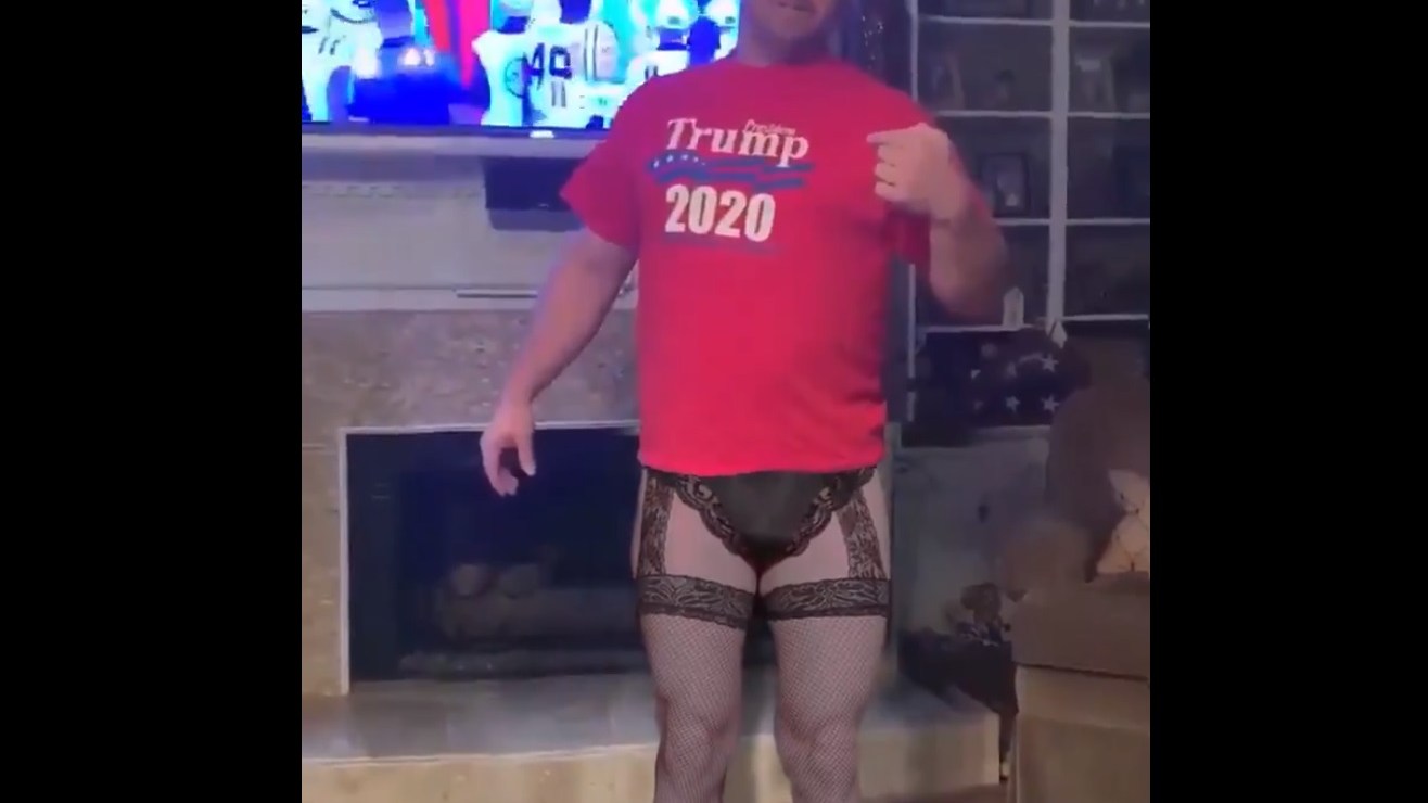El periodista Travis Aker, colaborador de CNN y otros medios, publicó un video de Deau Hutchinson donde luce con medias y ropa interior de encaje y luciendo una playera sobre la campaña de reelección del presidente Trump para el 2020.