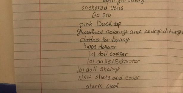 Lista de deseos de una niña de 5 años. Crédito: Twitter