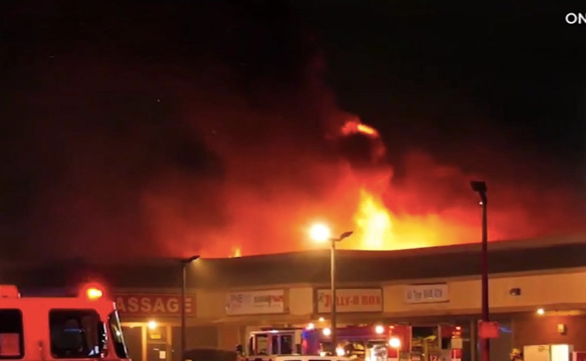 Un incendio de tres alarmas destruyó varios negocios en un edificio comercial de Anaheim.