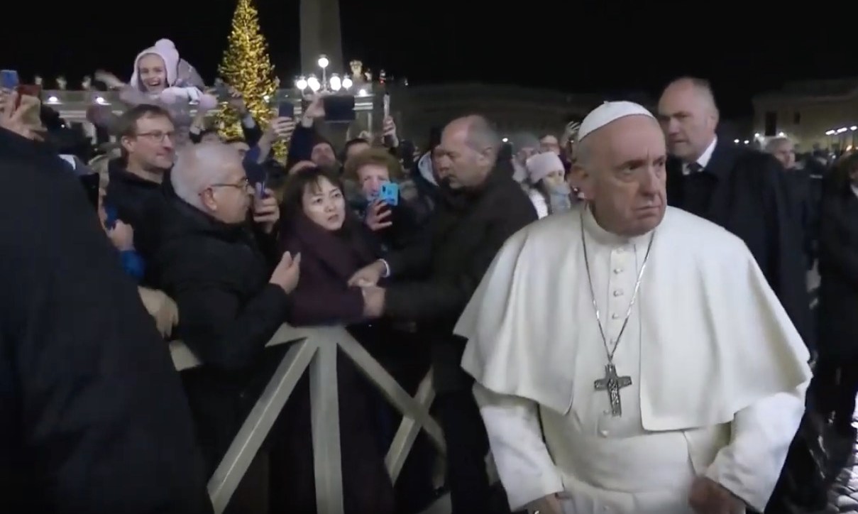 Papa Francisco le da una palmada a una mujer que lo acosó en la plaza de San Pedro