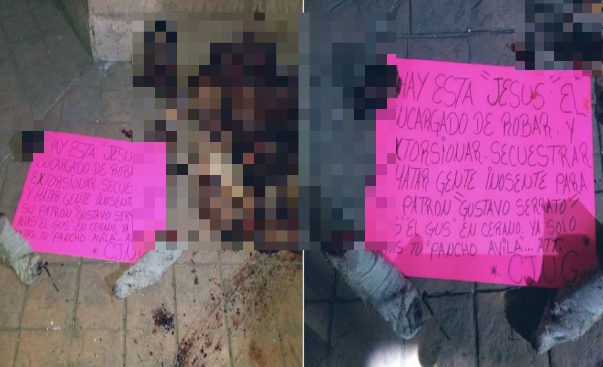 “Ahí está Jesús el encargado de robar y extorsionar, secuestrar, y matar gente inocente para su patrón Gustavo Serrano alias el Gus en ‘cerano’ ya solo faltas tú Pancho Ávila. Atte, CJNG” (Sic), se lee en el narcomensaje.