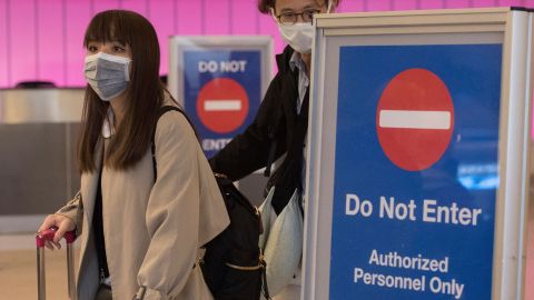 Pasajeros en aeropuerto de Los Ángeles, California, monitoreados para detectar contagio por coronavirus. Crédito: MARK RALSTON | AFP / Getty Images