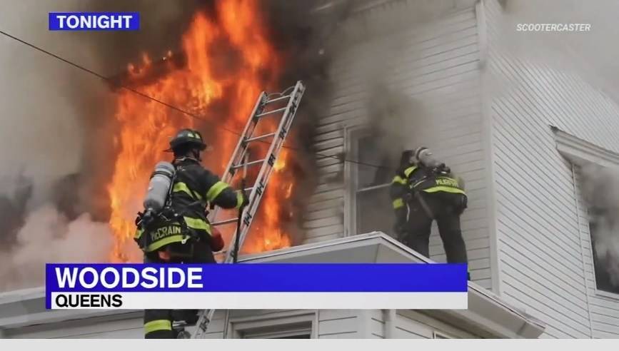 El fuego estalló alrededor de las 3:25 p.m. en el segundo piso de una casa en 39-30 56th St. en Woodside, antes de extenderse a un segundo hogar, según FDNY.