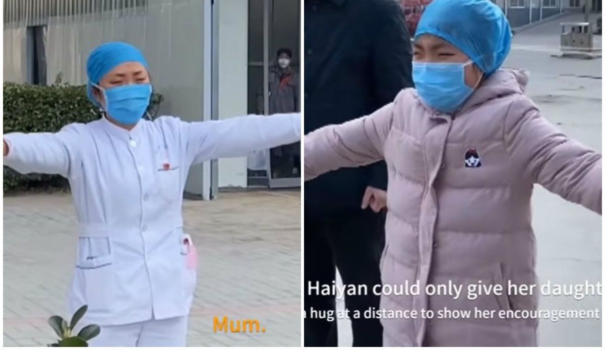 En las imágenes podemos ver a una enfermera llamada Liu Haiyan, la cual trabaja en un hospital de Fugou, en Henan, China, la cual se encuentra también en cuarentena debido a que ha estado ateniendo a pacientes infectados por el coronavirus, por lo que lleva ya varios días alejada de su familia, sobre todo de su hija, Cheng Shiwen, quien llora desesperadamente al no poder estar con su mamá.