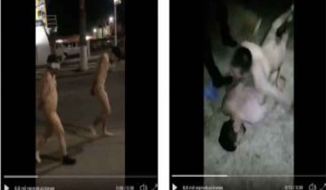 Se aprecia en el clip de 23 segundos de duración se aprecia cómo dos hombres son obligados a correr desnudos, con el rostro cubierto y descalzos.