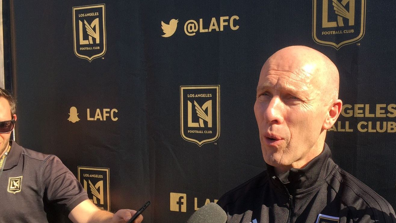 Bob Bradley, director técnico del LAFC, habla con los reporteros luego de la primera sesión de entrenamiento del equipo. Crédito: Ricardo López Juárez