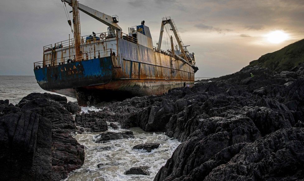 Las imágenes del buque fantasma que encalló en Irlanda después de atravesar el Atlántico