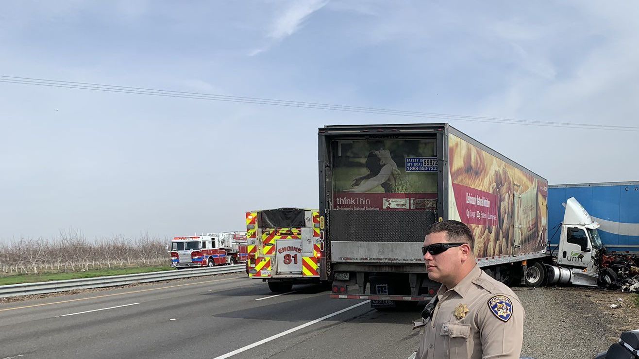 El tráfico se detuvo en la Interestatal 80 el viernes en el área de Dixon, en el norte del condado de Solano,  después de que un camión de remolque con una gran plataforma atravesara la división central de la carretera, reporta KCRA.