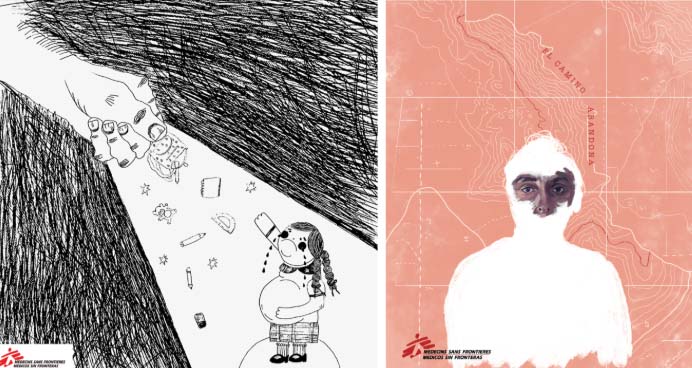 Algunos de las ilustraciones de la serie "Mujeres Sin Fronteras". Crédito: Ange Cano; Daniela Guzmán; Liliana Ramírez para Médicos Sin Fronteras | Cortesía