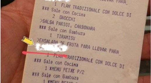 Según lo contado al diario Clarín, la pareja pidió como cena ensañada de frutas, ñoquis y tiramisú. La noche transcurría perfectamente hasta que llegó la hora de pagar pues alguno de los empleados escribió en su ticket una frase altamente ofensiva: “Ensalada de fruta para los pu%&os”.