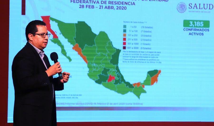 La Ciudad de México es la entidad con el mayor número de casos activos confirmados con un total de 883, seguido por los estados de México, Baja California, Tabasco y Sinaloa, señaló el informe.