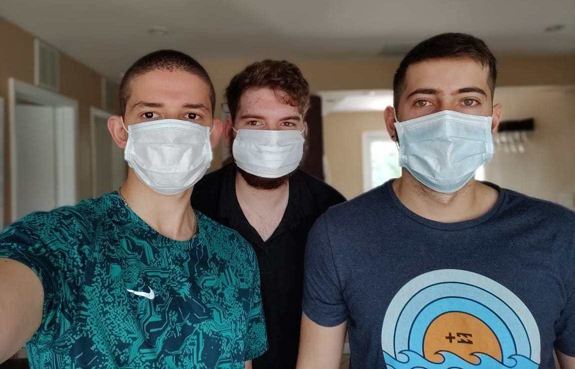 Lautaro Avenali, Lautaro Coraggio y Lucas Medina son los tres estudiantes argentinos que llevan más de un mes varados en Miami y no saben cuándo van a poder regresar a su país natal. Crédito: Lautaro Coraggio | Cortesía