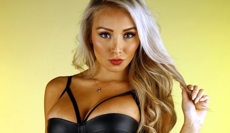 María Elisa Camargo posa con leggings de látex, mostrando un profundo escote