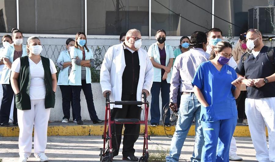“Llegaban por centenas de otros hospitales con sus enfermos sin oxígeno y los teníamos que rechazar porque ya no teníamos ni un solo respirador, ni una sola cama”, cuenta en entrevista con este diario después de una protesta en el Zócalo de la Ciudad de México en plena fase 3 de la pandemia por los derechos laborales y equipo para hacer frente a COVID-19 sin infectarse.