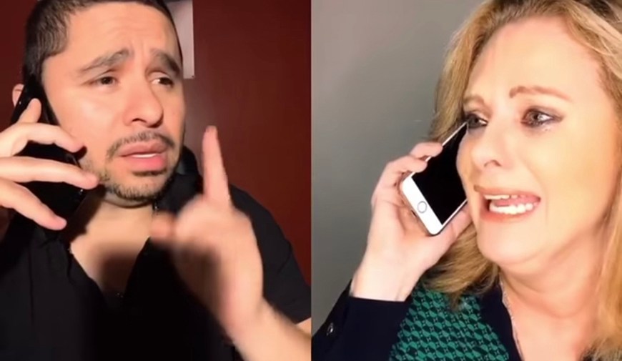 ¿Quién es quién? Erika es Ana Gabriel y Larry es Vicky Carr. Pero más que seguir contándote, es más divertido que lo mires y te diviertas como nosotros al verlos y ellos al hacerlo: