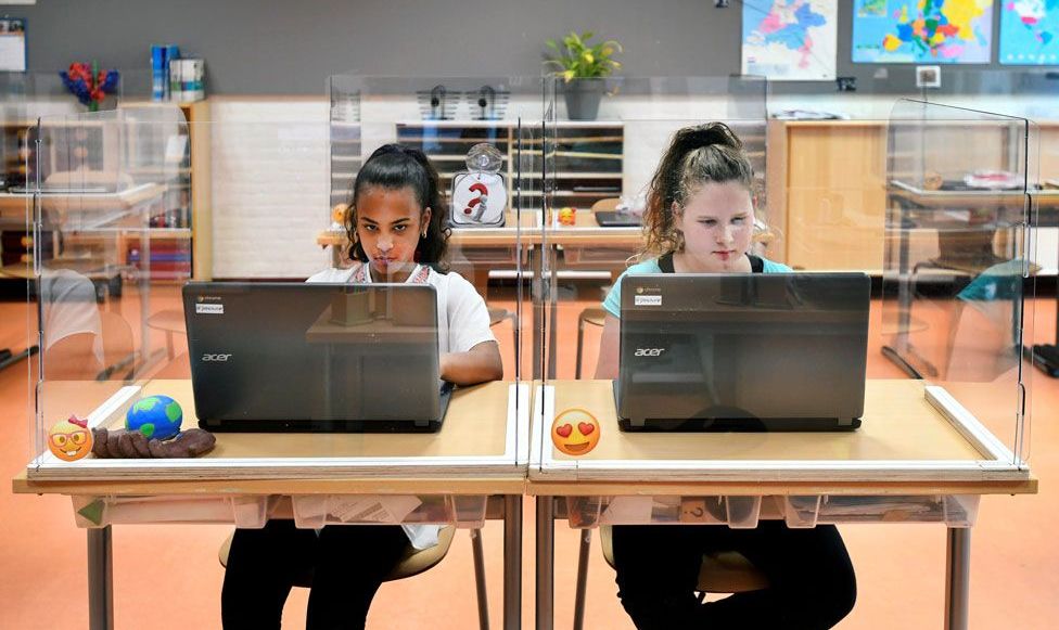 Incluso los países en los que se ha permitido a los niños ir a la escuela están adaptando las aulas con plexiglass.