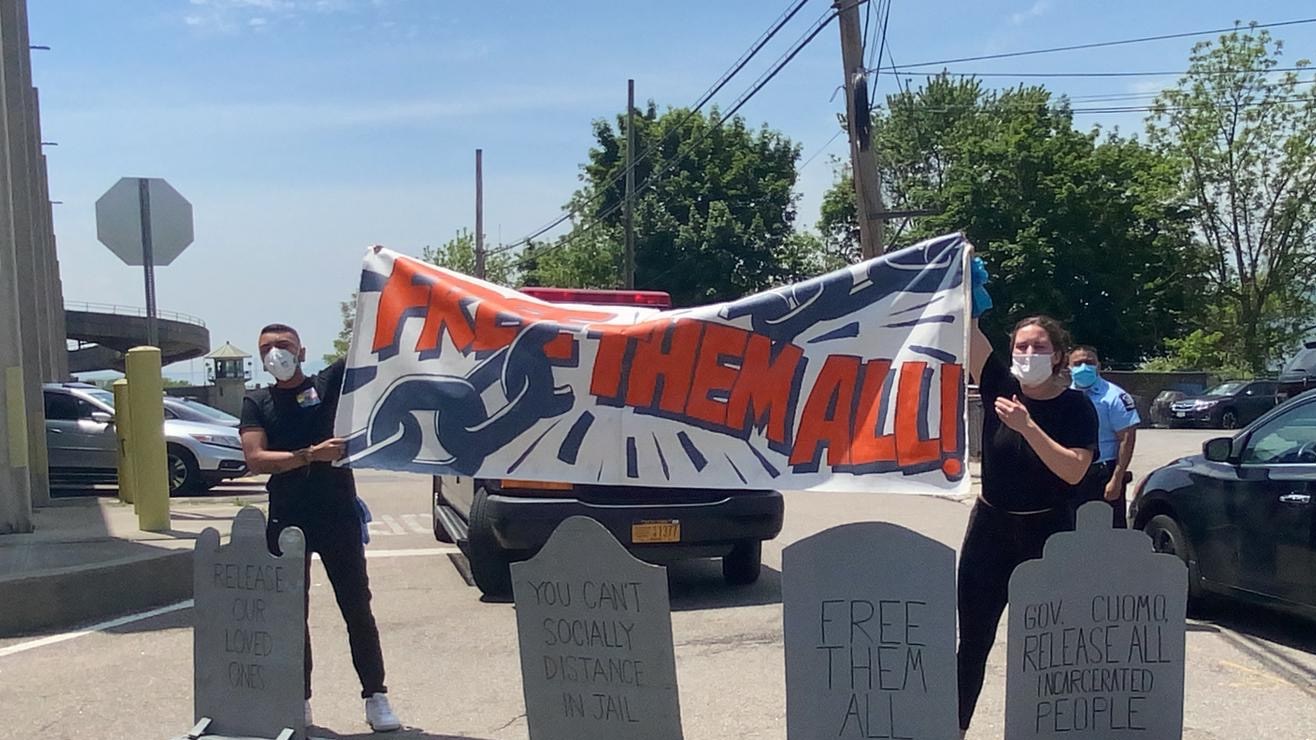 Los activistas viajaron hasta la cárcel de Sing Sing donde murió el primer prisionero al inicio de la pandemia. A la fecha, unos 500 presos han dado positivo a las pruebas contra el virus