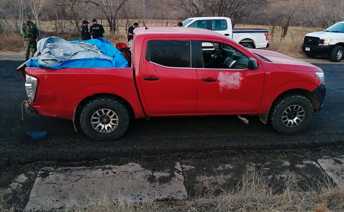 HUETAMO (MÉXICO), 23/05/2020.- Fotografía de una camioneta donde fueron encontrados doce cadáveres, este sábado, en Huetamo, estado de Michoacán (México). Narcotraficantes abandonaron los cuerpos de 12 hombres en una camioneta tras asesinarlos a balazos en el límite de los estados de Michoacán y Guerrero, en el occidente de México, revelaron autoridades este sábado. Crédito: EFE