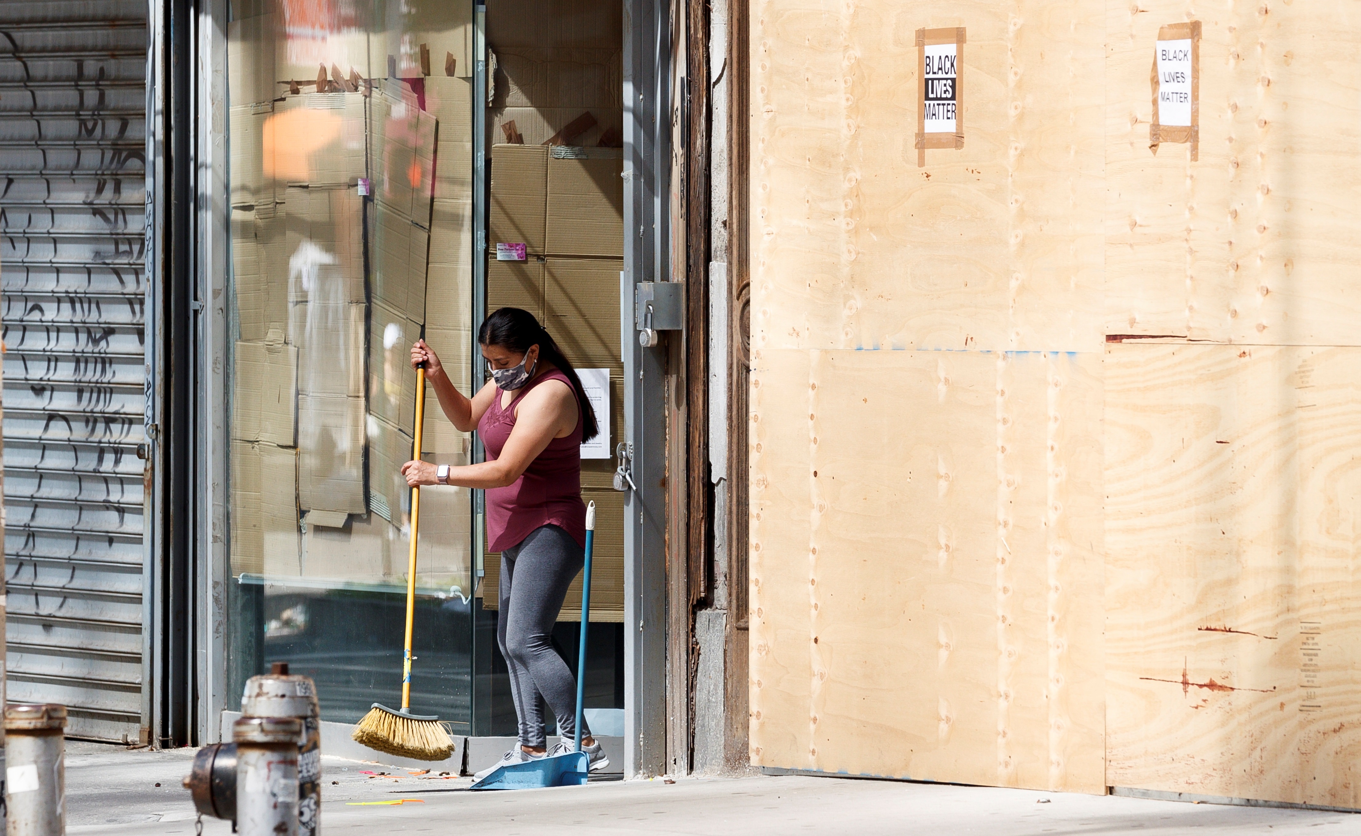 A la incertidumbre de los pequeños negocios por el miedo de sus posibles clientes a los contagios se ha sumado también el temor a nuevas manifestaciones violentas en una ciudad que, durante este primer día de vuelta a la vida, aún dejó imágenes de calles notablemente vacías.