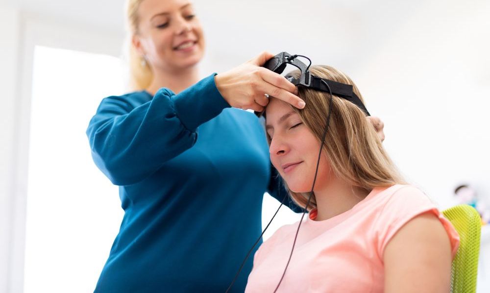 Las sesiones de neurofeedback son monitorizadas por un terapeuta que coloca electrodos en el cuero cabelludo y en los lóbulos de las orejas del paciente. Los electrodos recogen información sobre la actividad eléctrica del cerebro del paciente.