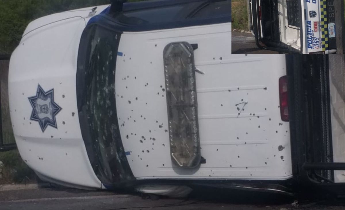 Los siete policías viajaban en una patrulla de la coorporación, cuando hombres con armas largas les cerraron el paso, y cuando intentaron escapar del lugar, el elemento que conducía la patrulla perdió el control y se volcaron.
