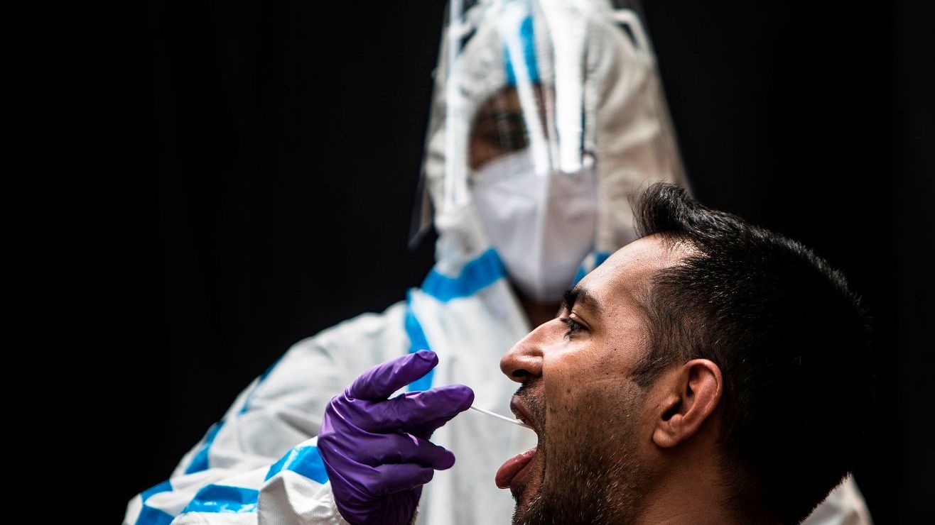 Personal médico realiza una prueba de coronavirus en India. Crédito: AFP / Getty Images