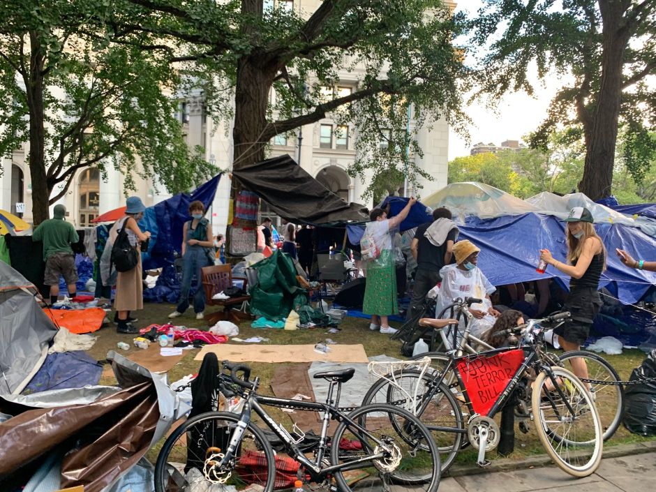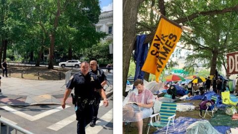 El pasado 23 de junio un grupo de manifestantes del movimiento ‘Black Lives Matter’ que llevaban semanas protestando en las calles de la ciudad en contra de la brutalidad policial y la muerte de George Floyd instaló un campamento en las afueras de la sede de la Alcaldía, con el fin de exigir que se recortarán $1,000 millones del presupuesto del NYPD. Y lo que comenzó como una manifestación de apenas decenas de personas, se transformó en pocos días en una masiva demostración de cientos que de personas que acamparon allí día y noche, instalando carpas improvisadas y creando una comunidad que contaba con servicios de alimentos, productos para la desinfección por el coronavirus y hasta una biblioteca para la recreación.