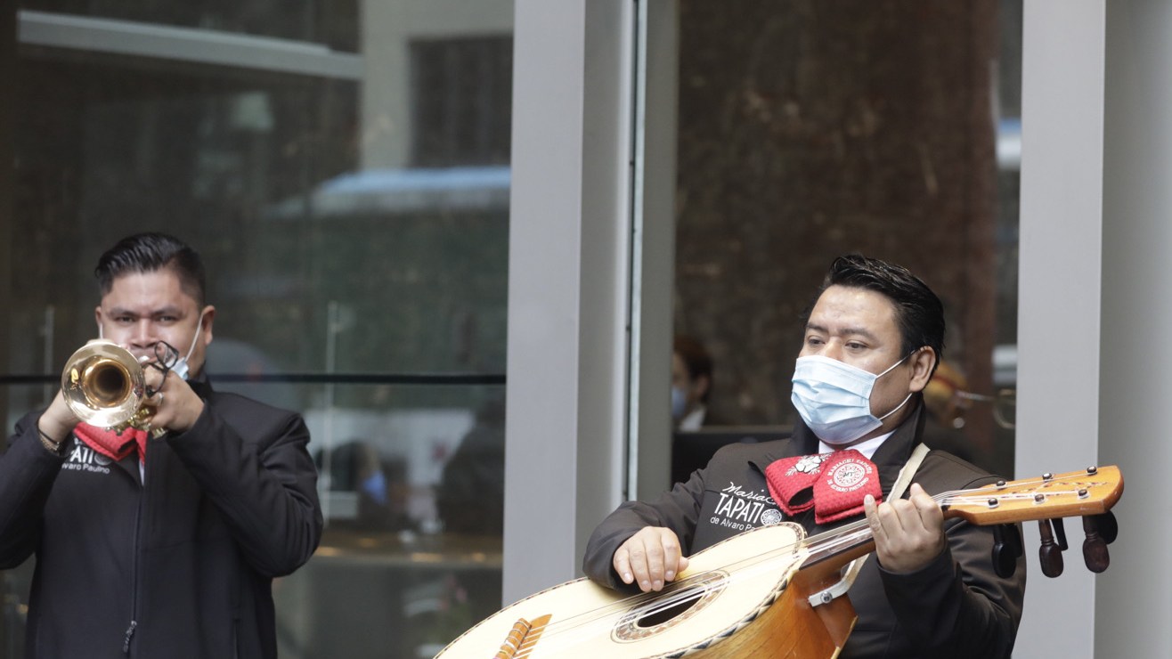 Hasta mariachis cantaron en frente de la oficina de Cuomo en Manhattan para clamar ayuda a los inmigrantes. (Foto: Cortesía NYMR) Crédito: Cortesía | Cortesía
