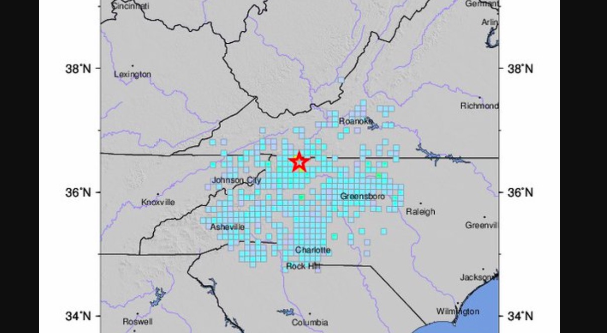 El impacto fue a las 8:07 a.m. con epicentro cerca de Sparta, a 100 millas al norte de Charlotte. Los primero reportes dicen que se sintió en South Carolina, Tennessee, Virginia y Georgia. Algunas personas reportaron el temblor en Atlanta.