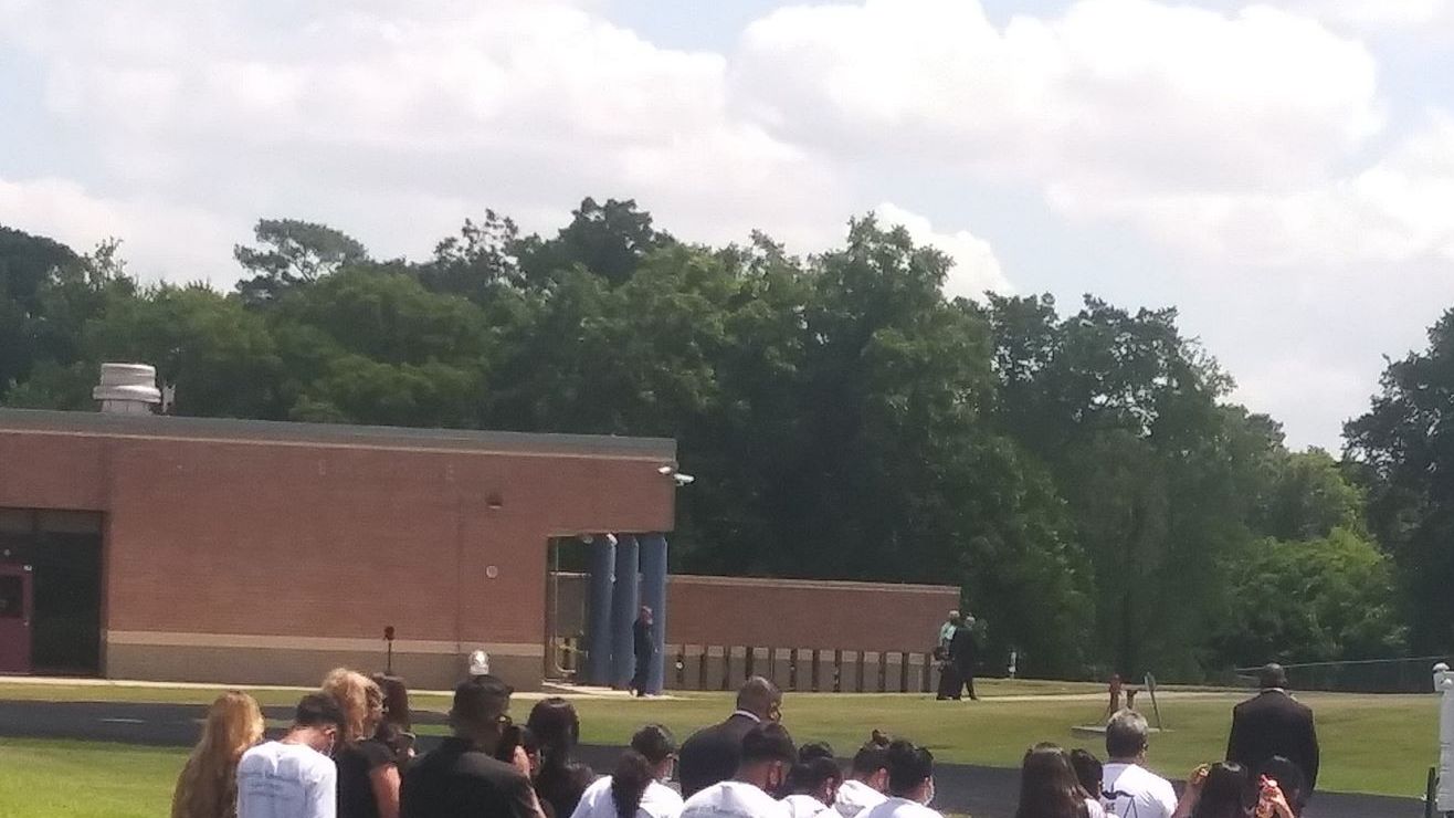 Familiares y amigos cercanos acompañaron la carroza por la pista de la preparatoria Chávez en Houston