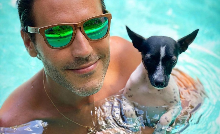 Quique, quien acaba de sacar una línea de lentes de sol ecológicos, lleva a todos lados a su perrita, desde paseos, citas, hasta de vacaciones. Ha conocido el sabor del mar y también de la piscina donde suelen nadar juntos, ¿no nos creen?