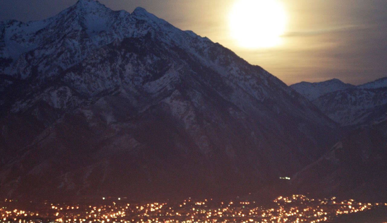 La luna sobre Salt Lake City en febrero de 2012. Crédito: Bill Dunford | NASA
