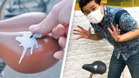 Motoki Reoga, de 29 años y originario de Saitama, Japón, diseñó una pegatina que parecen heces de pájaro para poner en tu asiento y disuadir a la gente de robar tu bicicleta.