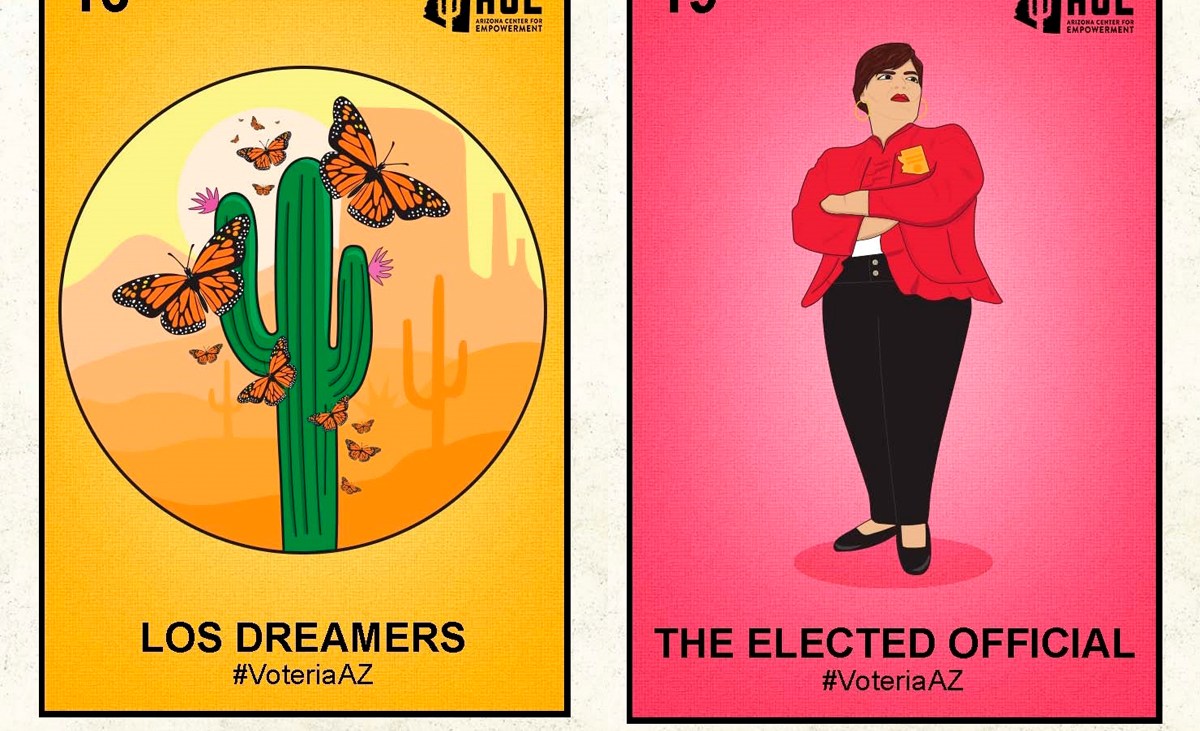 Un grupo de activistas ha desarrollado una campaña para impulsar el voto hispano en Arizona y se ha valido de tarjetas de la lotería mexicana pero con la imagen de figuras y personas de esta comunidad.