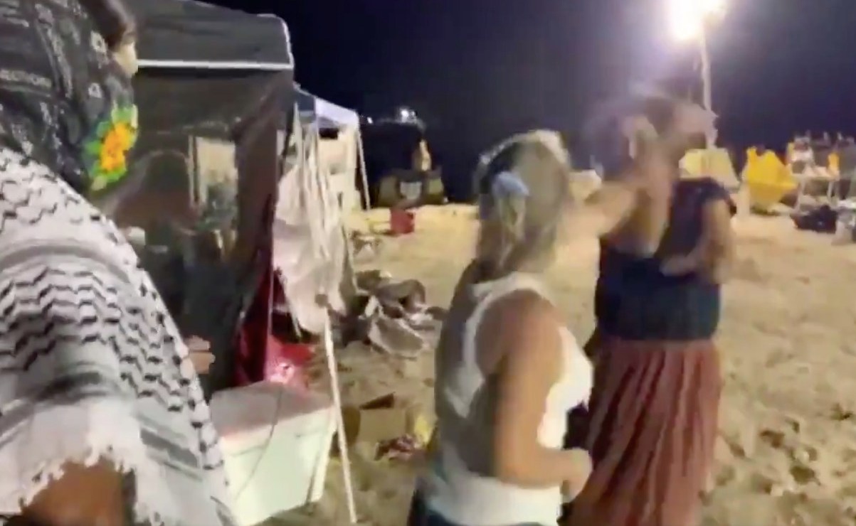 En las imágenes se ve a la mujer golpear a los indígenas. La agresora parece estar bajo los efectos del alcohol. Luego se burla de las oraciones y canciones de los activistas, que se limitan a pedirle que no los toque.
