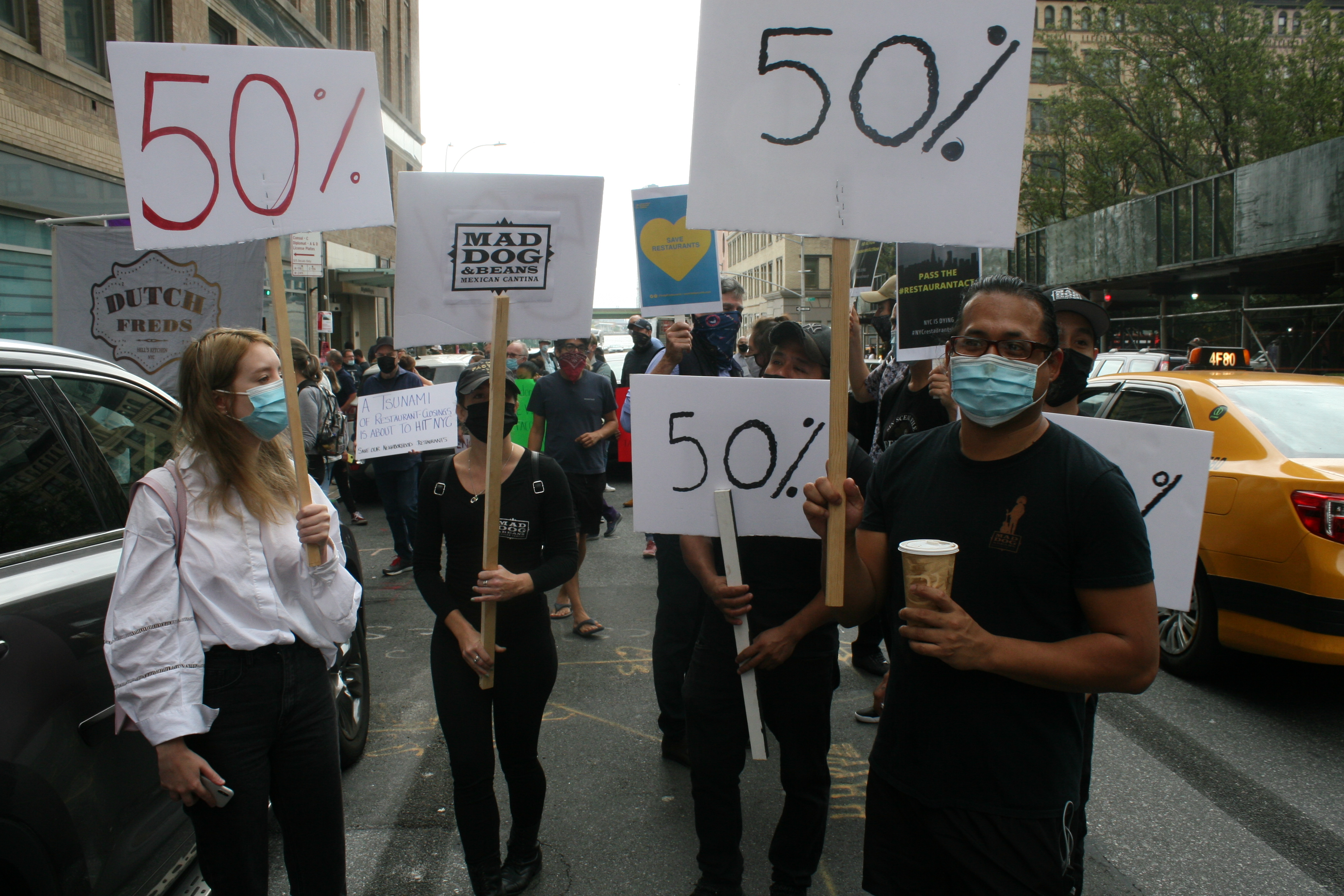 La concentración en la Tercera avenida de Manhattan, fue convocada por Mark Fox, propietario de Fox Lifestyle Hospitality Group en Nueva York, que opera cuatro bares y restaurantes, los cuales describe como el “sustento de decenas de miles de trabajadores”.