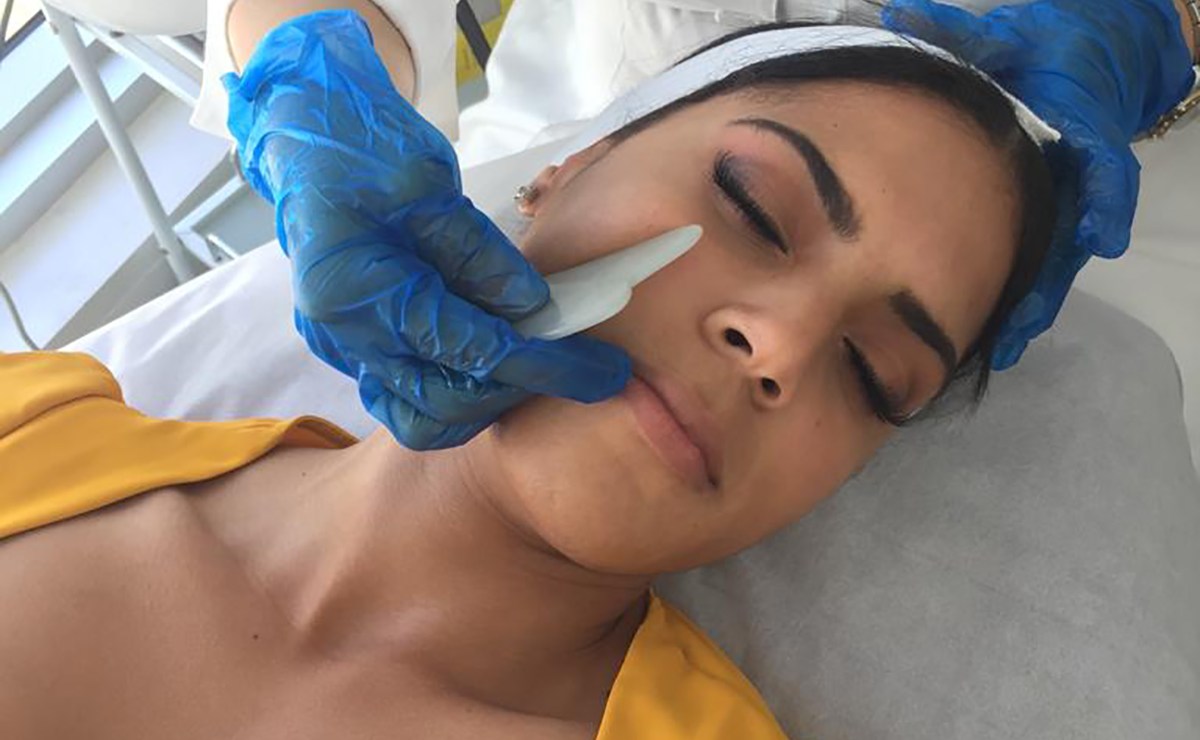 Además, Francisca se hace limpieza facial con la técnica ‘shua sha’, con piedra jade, para remover impurezas, drenar la piel, mejorar su circulación y rejuvenecerla al liberar tensión de los tejidos.