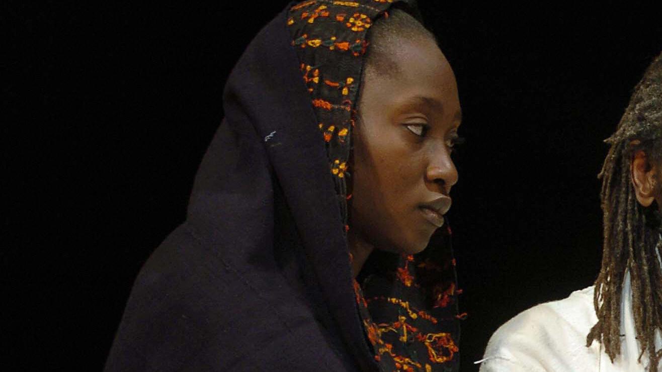El actor Sotigui Kouyate (centro) como Tierno Bokar en la obra de teatro "Tierno Bokar" de Peter Brook. Crédito: Volker Hartmann, DDP | AFP / Getty Images