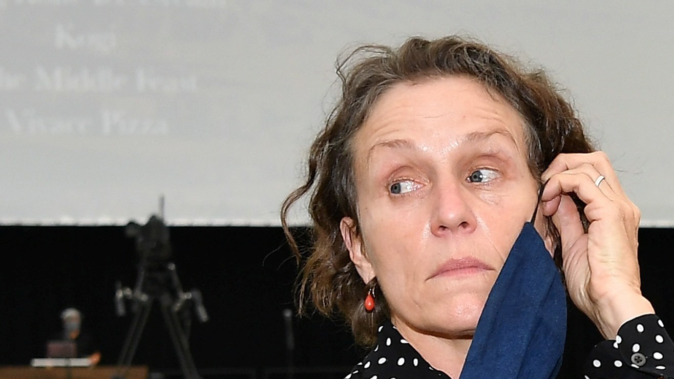 "Nomadland" se estrenó en un autocine, sin lujos.