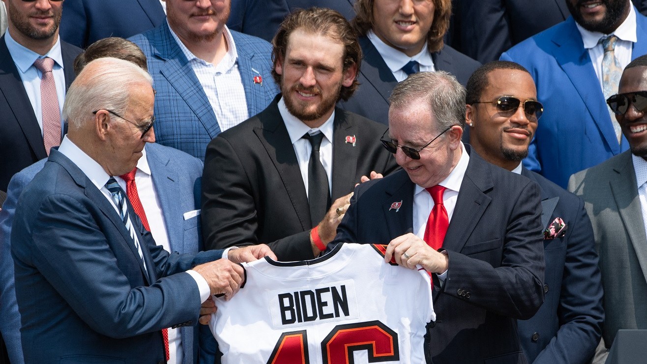 El equipo le regaló una camiseta personalizada de los Tampa Bay Buccaneers al presidente Biden, marcada con el 46, en referencia a que es el Presidente 46 de los Estados Unidos.