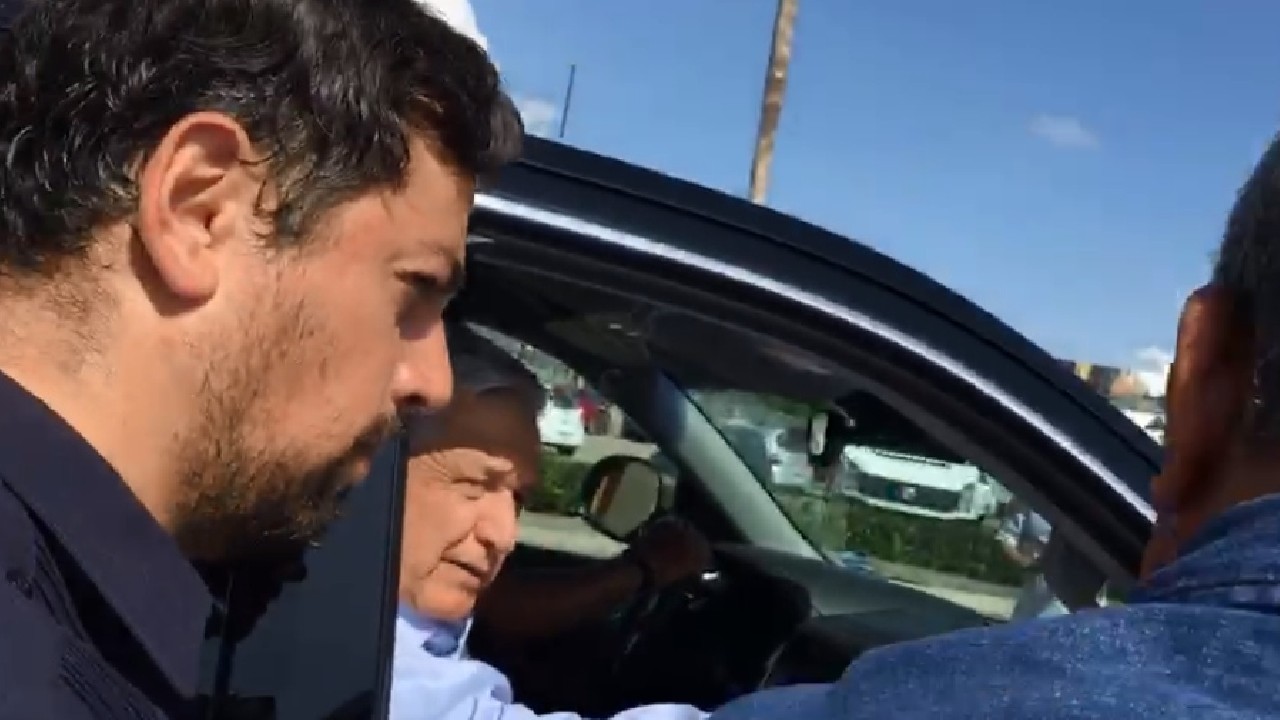 El tabasqueño fue abordado a su salida de un hotel de esta localidad, donde pernoctó luego de que ayer concluyera una gira en el Estado vecino de Sinaloa.