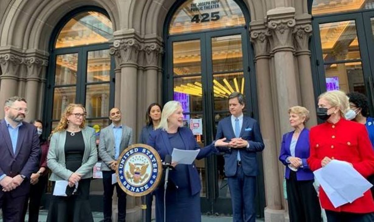 La propuesta de ley fue presentada por la senadora federal en un evento en frente del ‘Public Theater’ en Manhattan, en compañía de la congresista neoyorquina Carolyn Maloney, la concejal Carlina Rivera y el comisionado del Departamento de Asuntos Culturales de la Ciudad Gonzalo Casals, entre otros funcionarios y representantes del mundo de las artes. Gillibrand destacó que esos trabajos “nos ayudarían a contar la historia estadounidense completa: las artes son algunas de nuestras mejores herramientas para preservar las tradiciones populares y resaltar las comunidades cuyas narrativas han sido marginadas o borradas”.