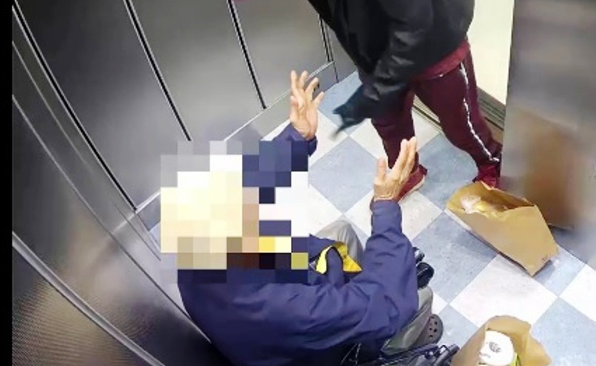 Las imágenes de vigilancia muestran al sospechoso sacando un cortador de cajas y supuestamente exigiendo dinero a la víctima, que estaba sentada en un andador con ruedas. Luego le registró los bolsillos y le sacó $60 dólares antes de salir del ascensor, informó Fox News.